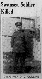 David Charles Collins SMS 1929 From Uplands, Guardsman, Welsh Guards, 2nd Battalion, died 24th May 1940 aged 21 years. Buried Boulogne Eastern Cemetery. |