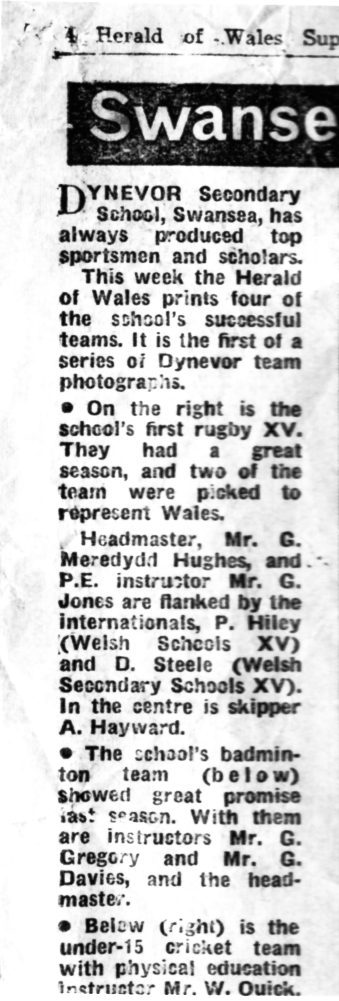The school was known as Dynevor Secondary Grammar and Mr. Meredydd Hughes was the headmaster. This page contains a photograph that has been submitted by John Richards.