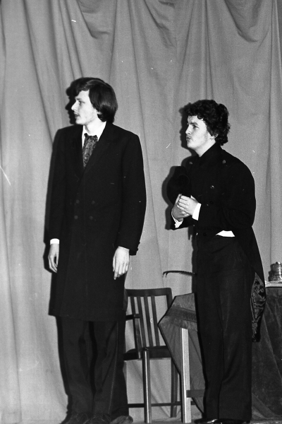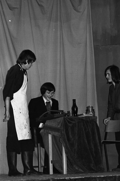 Rob Mitchell (1972-78) supplied the names of Clive Barrett, Andrew Clemes and Kevin Hobbs who were cast members and recalls that he and John Andrew set up the falling trap door stunt and worked as stage hands. Mr P. Myers added ‘Janet Elias’ to the cast list. Mr D. Taylor was the play’s director. Clive Barrett (1975-1980) added further names of cast members: Richard Barrett and Christopher Evans. Can you provide more information?